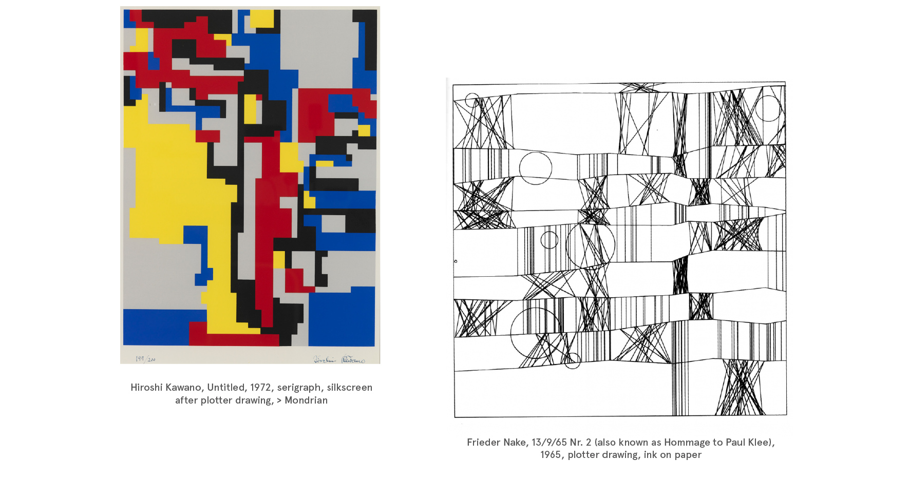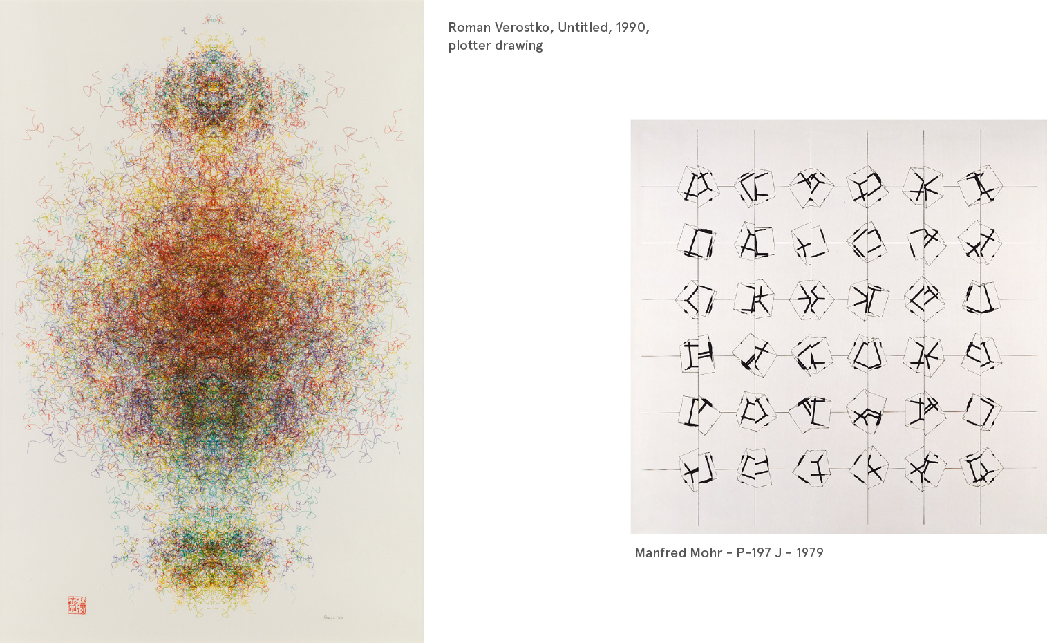 Jean-Pierre Hébert, Roman Verostko, Mark Wilson, Manfred Mohr, Frieder Nake, Hiroshi Kawano, Herbert Franke, Vera Molnar, Charles Csuri, Harold Cohen, George Nees, Edward Zajec,…