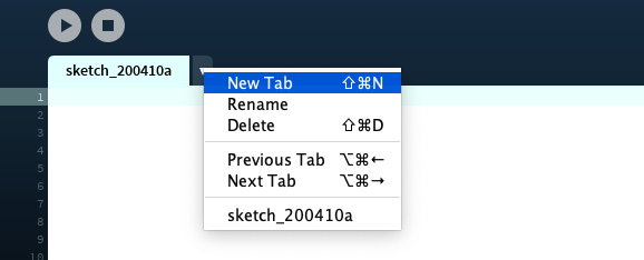 We first start working on our Agent. A quick way of structuring your Processing Sketch is to add a new Tab for this.