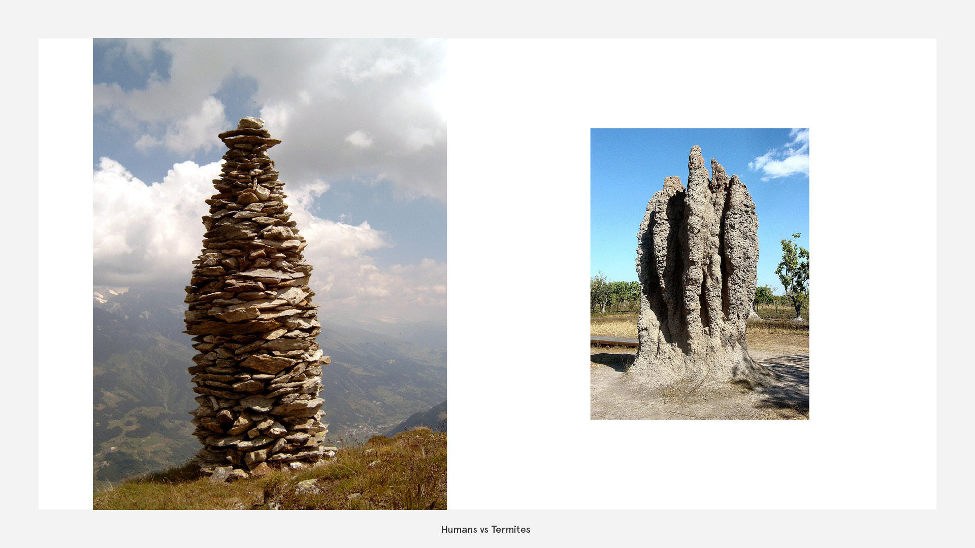 The term was invented by the biologist Pierre-Paul Grassé when studying termites, which leave signs (pheromon traces) in the environment that determine the actions of other termites that encounter it. With that simple mechanism they are able to effectively enable the construction of complex nests (termite hills).