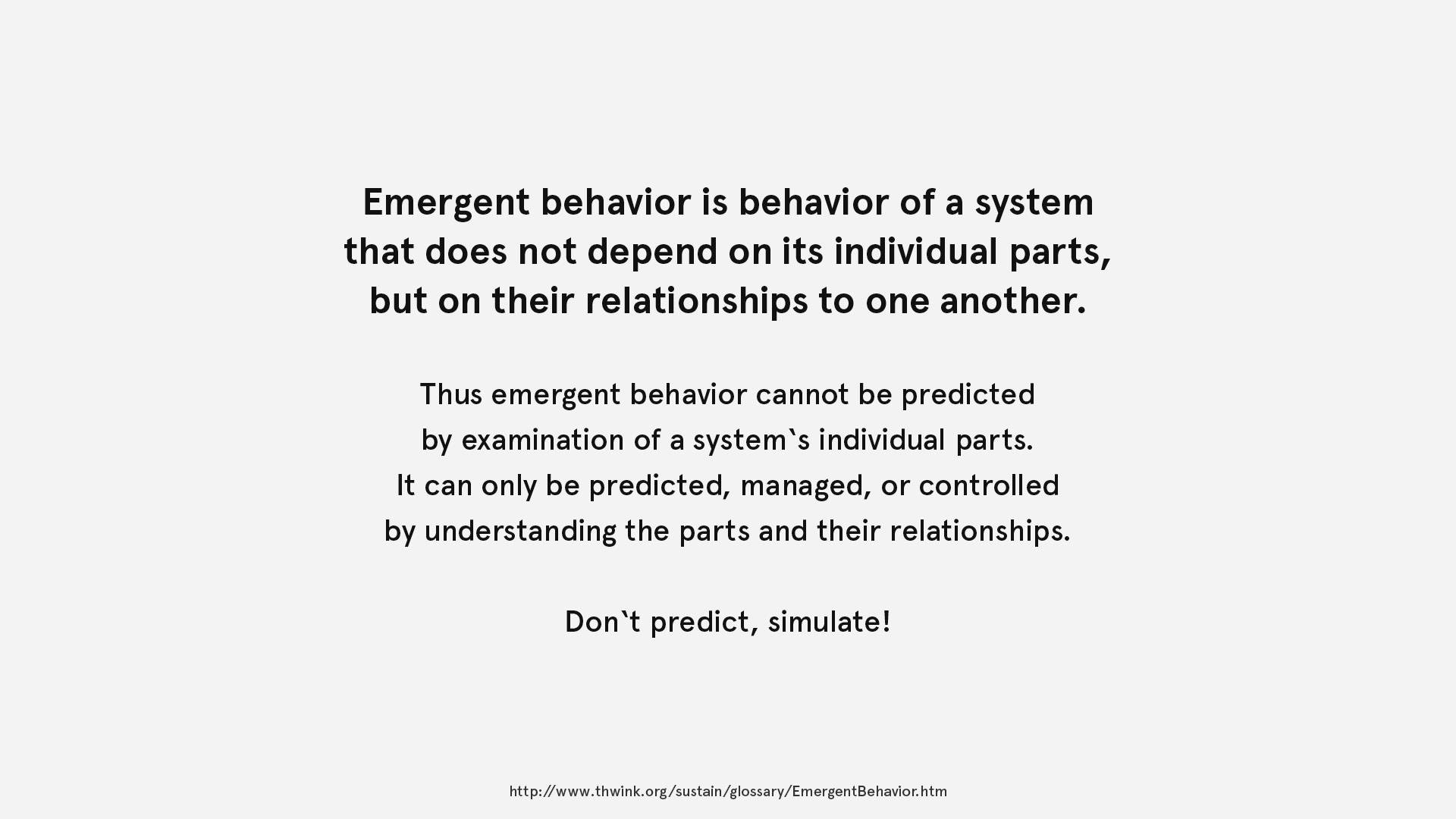 Stigmergy (from Greek stigma = sign and ergon = work/action) is a mechanism of indirect coordination in large multi-agent systems. It can be used to explain self-organisation in organisms and social insects.