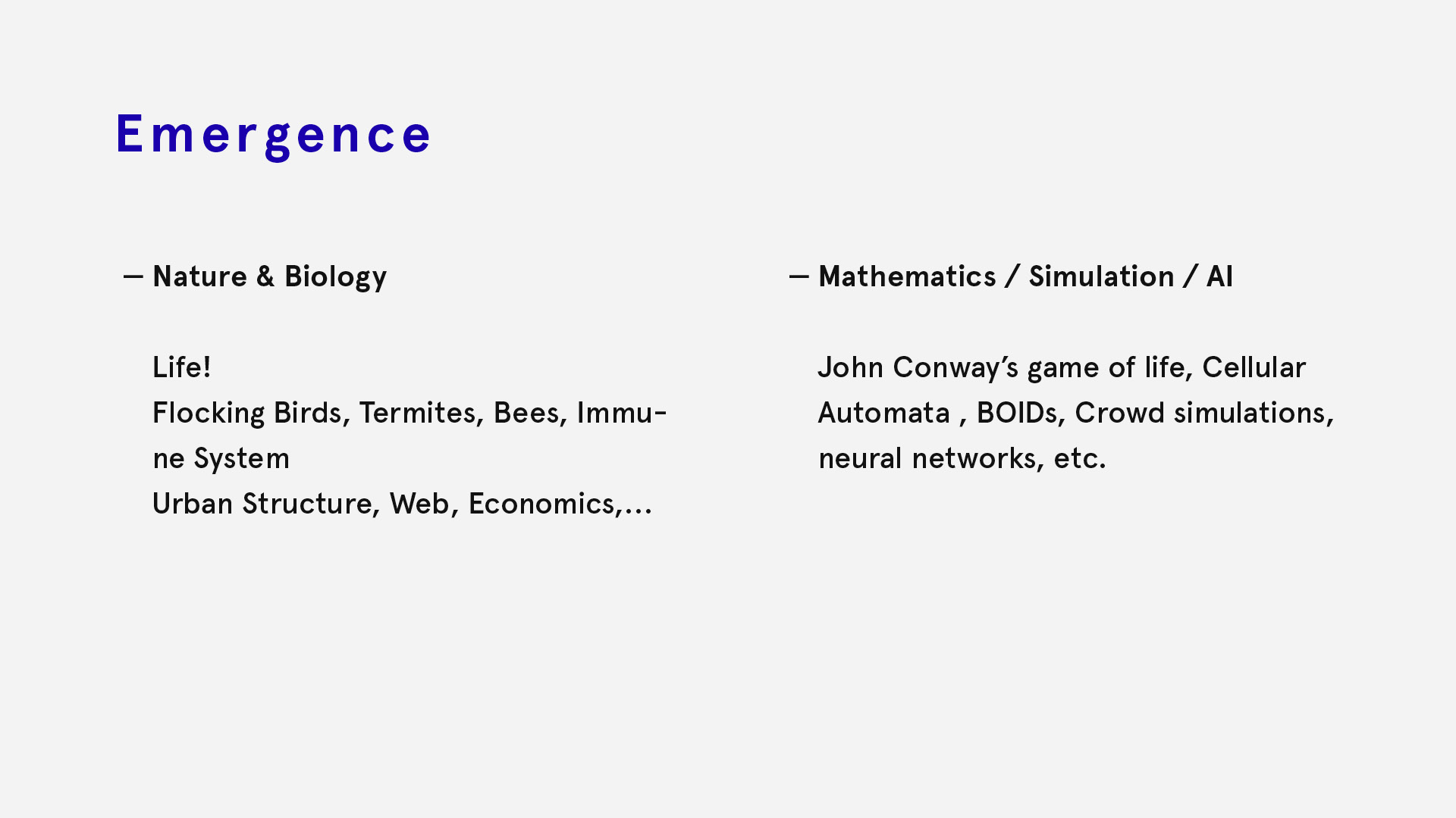 Reaction diffusion systems are an approach to model the spatial dynamics of chemicals. Interestingly they exhibit a wide variety of self-organising patterns.