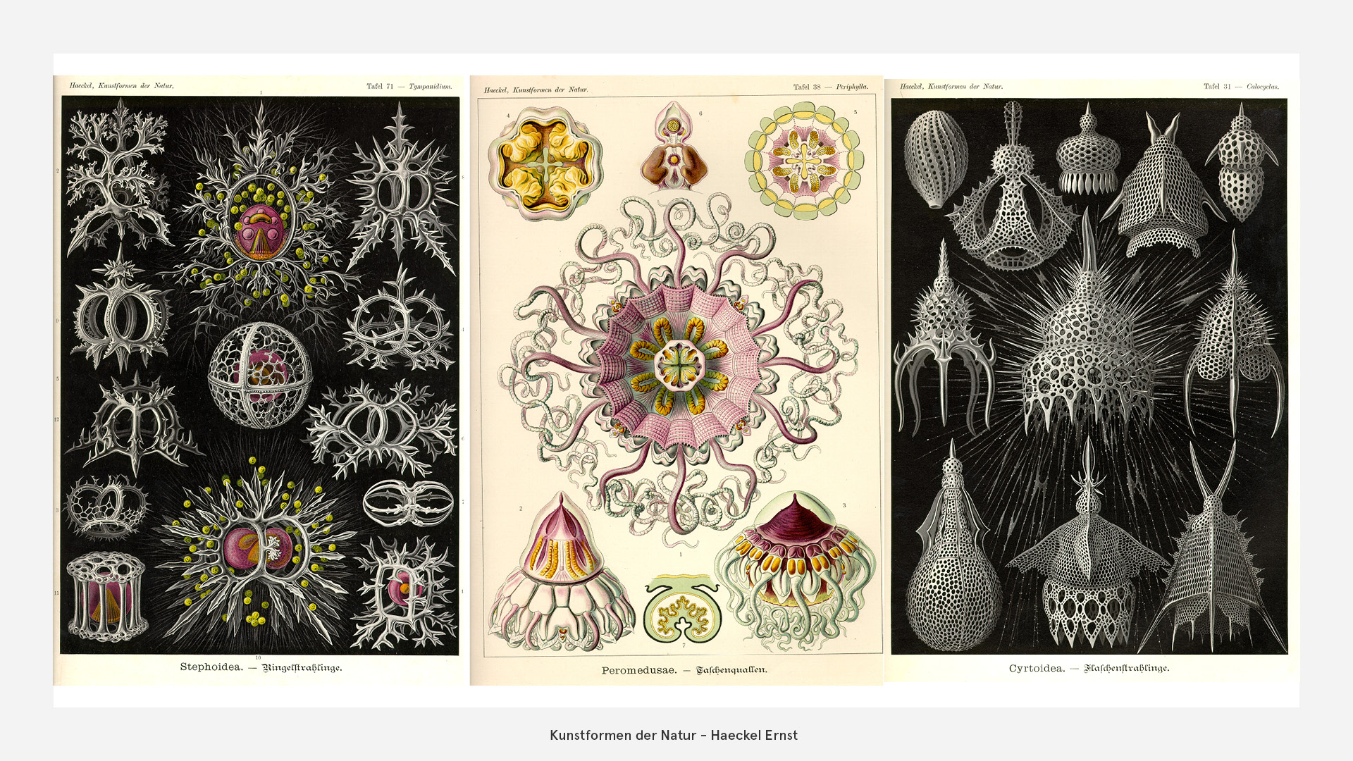 Haeckel's popular work discovers and beautifully documents all kinds of patterns in nature. It was very much guided by his preference for symmetry and an alleged world view of an organized nature and remains an important work that bridges science and art. He also intended his work to be an inspirational archive for modern artists. This motivation proofed successful especially for the Jugendstil (Art Nouveau) movement in Europe.